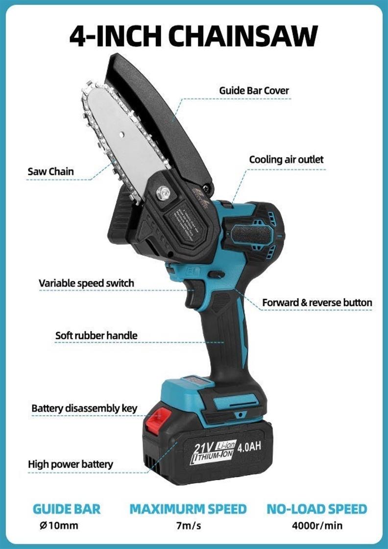 Kit with 4-Inch Chainsaw Impact Drill Angle Grinder Dual-Purpose Wrench 4.0Ah Li-Ion Batteries & Storage Case for Home Garden DIY